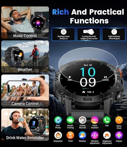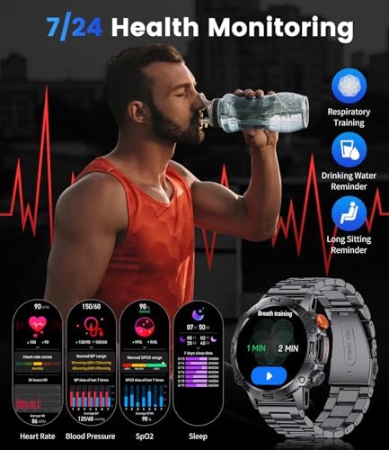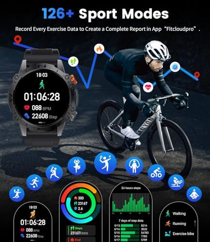 π΄ 126+ SPORTS MODES&24H HEALTH MONITOR-This mens smart watch with 126+ sports modes(Running, cycling, ball sports.etc.)and health monitoring can track diverse activities, record distance, speed, and calories burned. Health monitoring includes real-time heart rate/blood pressure/SpO2, sleep analysis,which provide insights into daily habits, aiding in the improvement of overall health. But the fitness watches for men are not a substitute for medical devices and cannot be used for medical purposes.