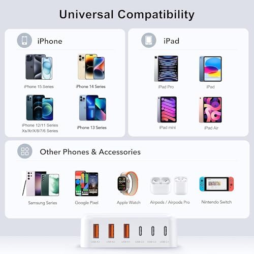 6 in 1 charging station for multiple devices; Widely compatible, goodbye messy desktop