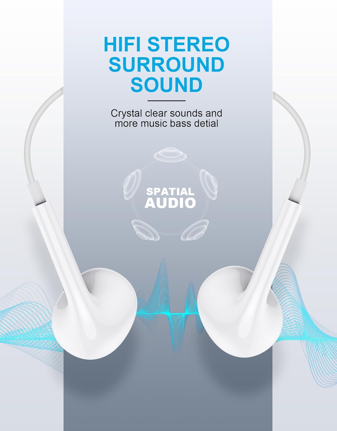 【HIFI Stereo Wired Earphones】High quality chip paired with 14.2mm dynamic and professional tuning present excellent high resolution acoustics. HIFI stereo surround sound, bass and more sound details, making it an excellent music earphones that allows you to immerse yourself in the music world