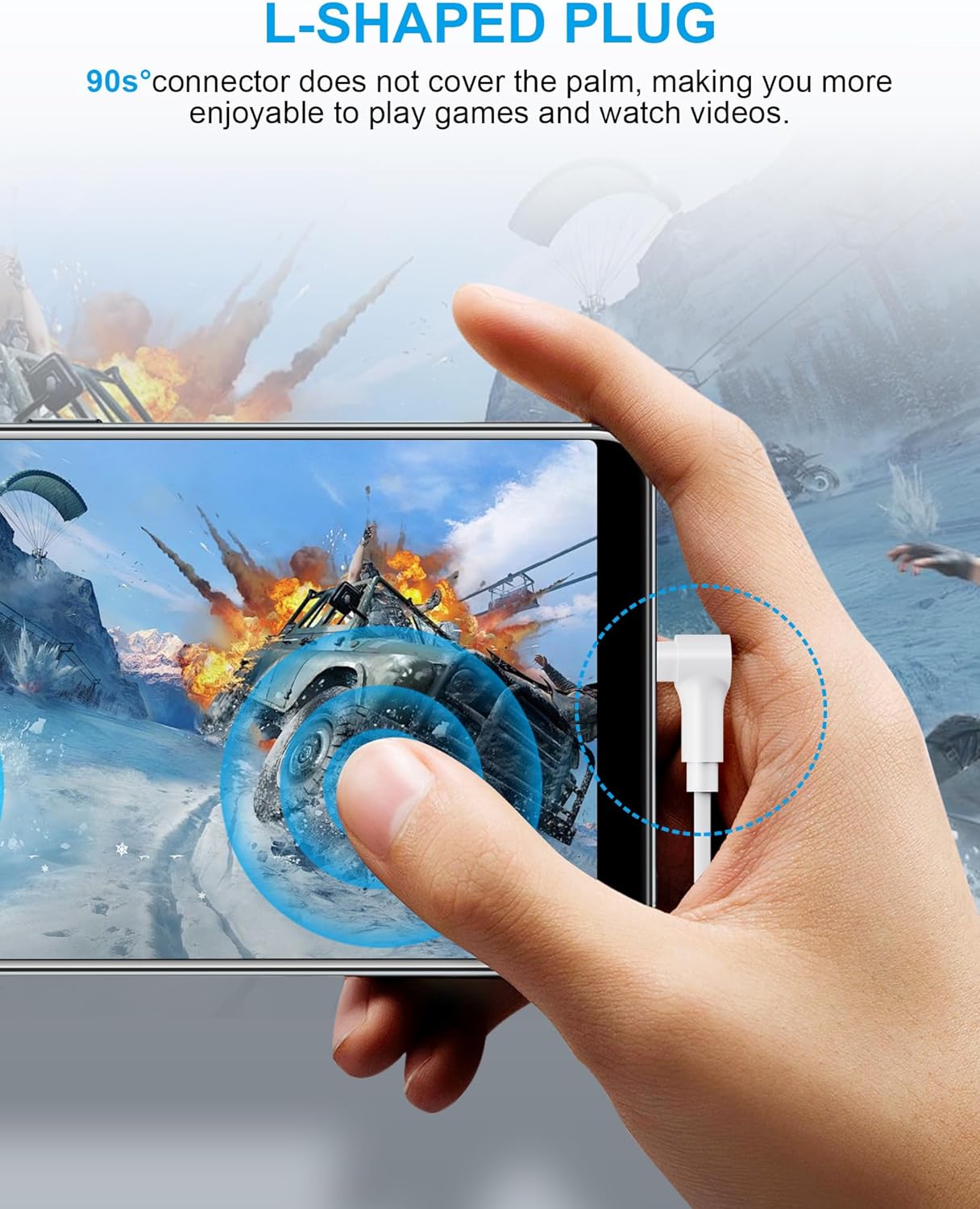 【90° Plug In Earbuds】 Thes elbow design wired earbuds perfect for charging & playing at the same time , The cable’s tension, bend, swing are strictly tested, it was proved a firm and durable charging cable. Making you more enjoyable to play games and watch videos