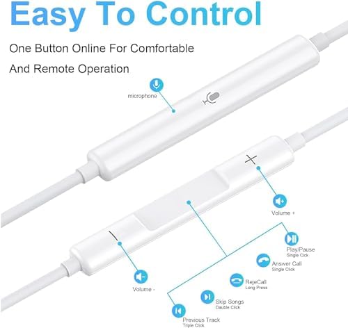 šµćStronger Wire & Remote Controlć: The usb c in ear wired headphones cord is strengthened for longer durability. Support Volume+/-, Last/Next Track, Pause, Answer/End/Reject Call to free your hands when listening to music, having phone calls while driving, walking, exercising, working, shopping, etc.