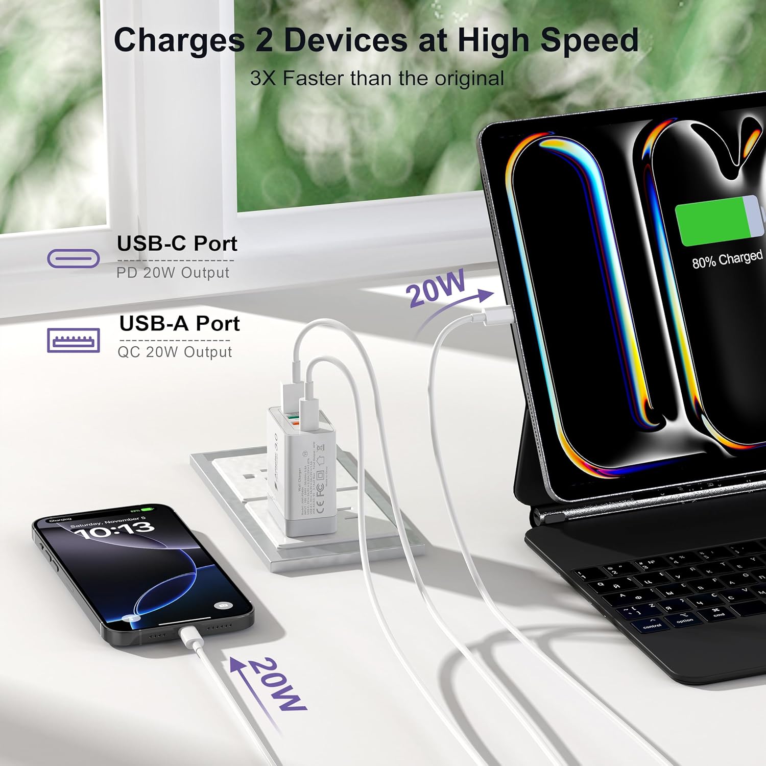 ![[2 Pack] USB-C Wall Charger, 40W Durable 4Port QC+PD 3.0 Power Adapter, Double Fast Plug Charging Block for iPhone 16/16 Pro/16 Pro Max/16 Plus/15/14/13/12, XS/XR/X, Watch Series 8/7 Cube(White) - Image 6](https://travelzoneuk.com/wp-content/uploads/2025/01/81Zp6ZfKPJL._AC_SL1500_.jpg)