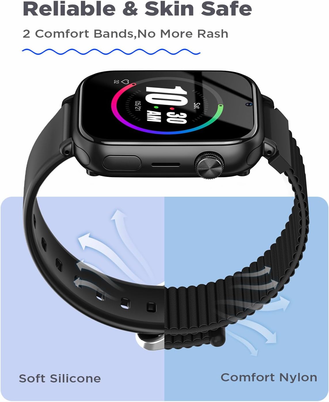 【Unbreakable Toughness Built for Kids】: The smart watch for kids features a sturdy ABS casing and comes with two protective films to safeguard against bumps and scratches during play. Its long-lasting design ensures durability, while the included silicone and nylon straps allow you to choose according to your child’s preference, preventing skin irritation and ensuring comfort