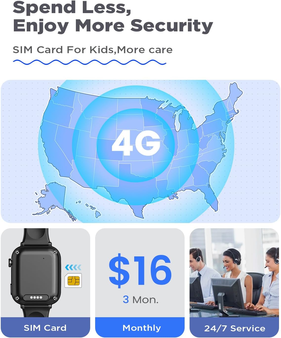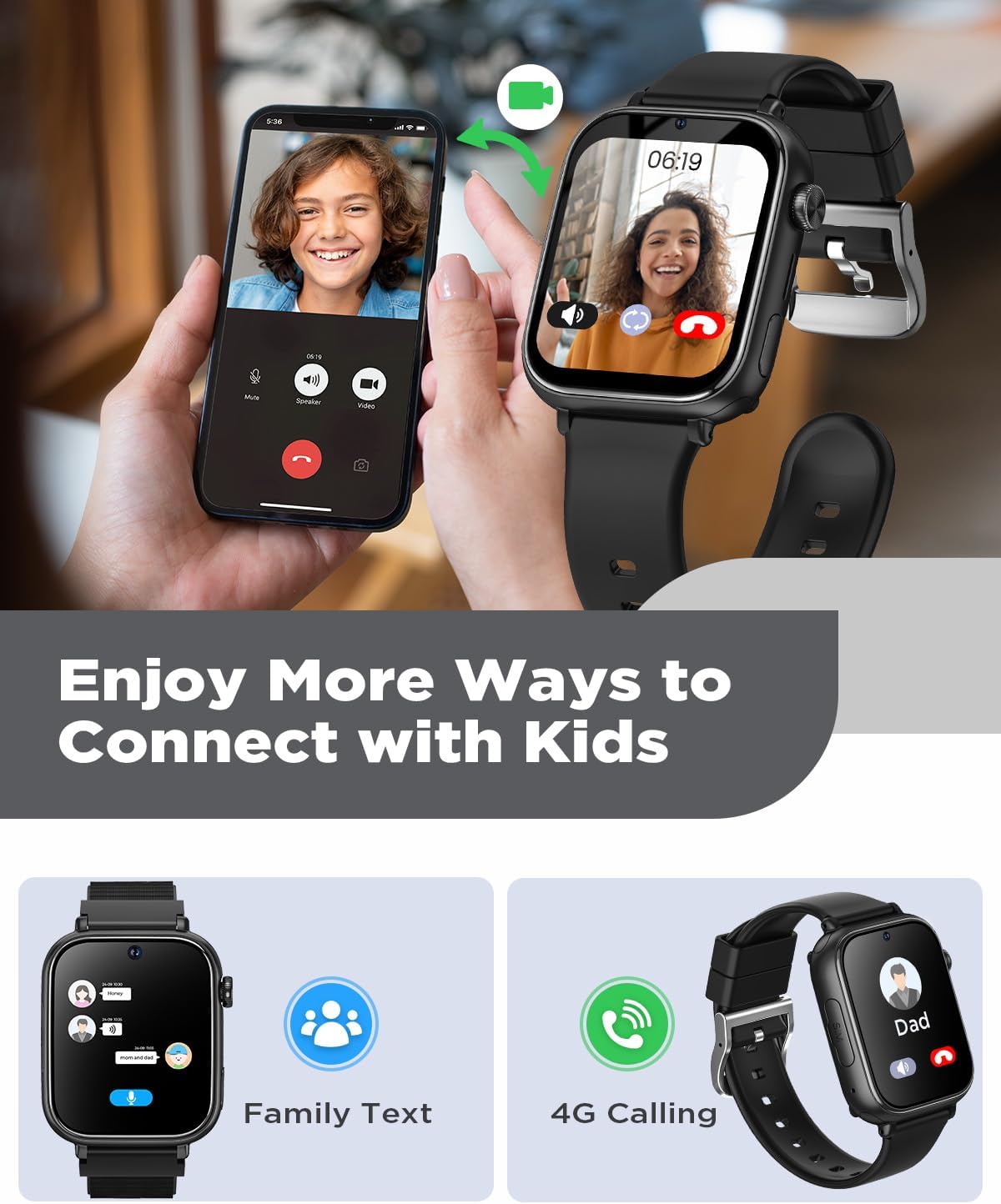 【4G Video Calling Anytime, Anywhere】:This smart watch for kids supports 4G calling and video chats, allowing seamless communication within the family’s secure group. Only approved contacts can reach the watch, and all messages and calls are restricted to those you permit. Manage everything effortlessly through the app, ensuring a safe and reliable experience for your child