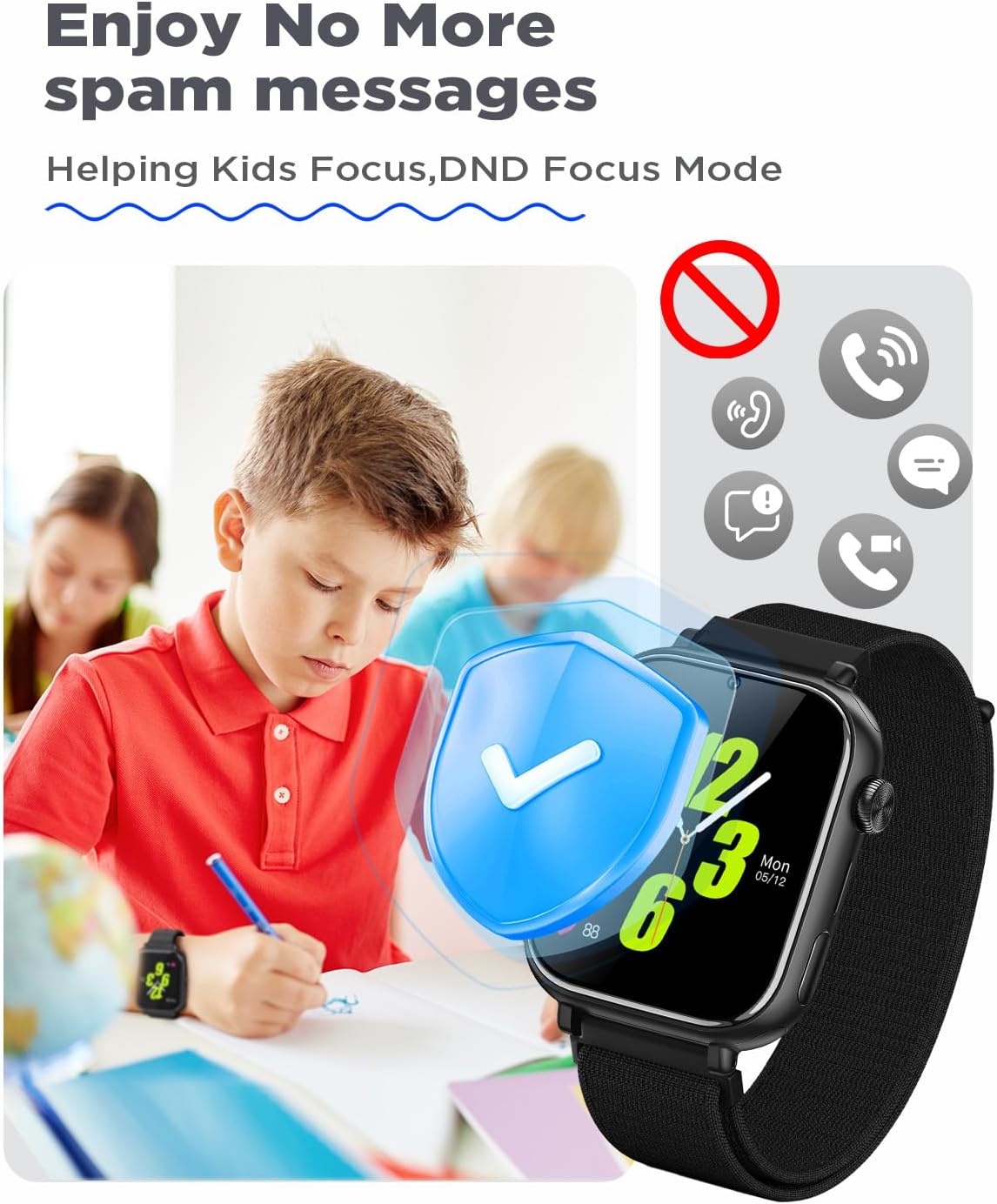 【Enjoy No Spam Calls or Messages】:This smart watch for kids is designed for your child’s physical and mental safety with no social media or open internet, featuring only basic network functions. It ensures secure communication without spam calls or messages and includes essential features like activity tracking, a front camera for photos and videos, and reminders and alarms