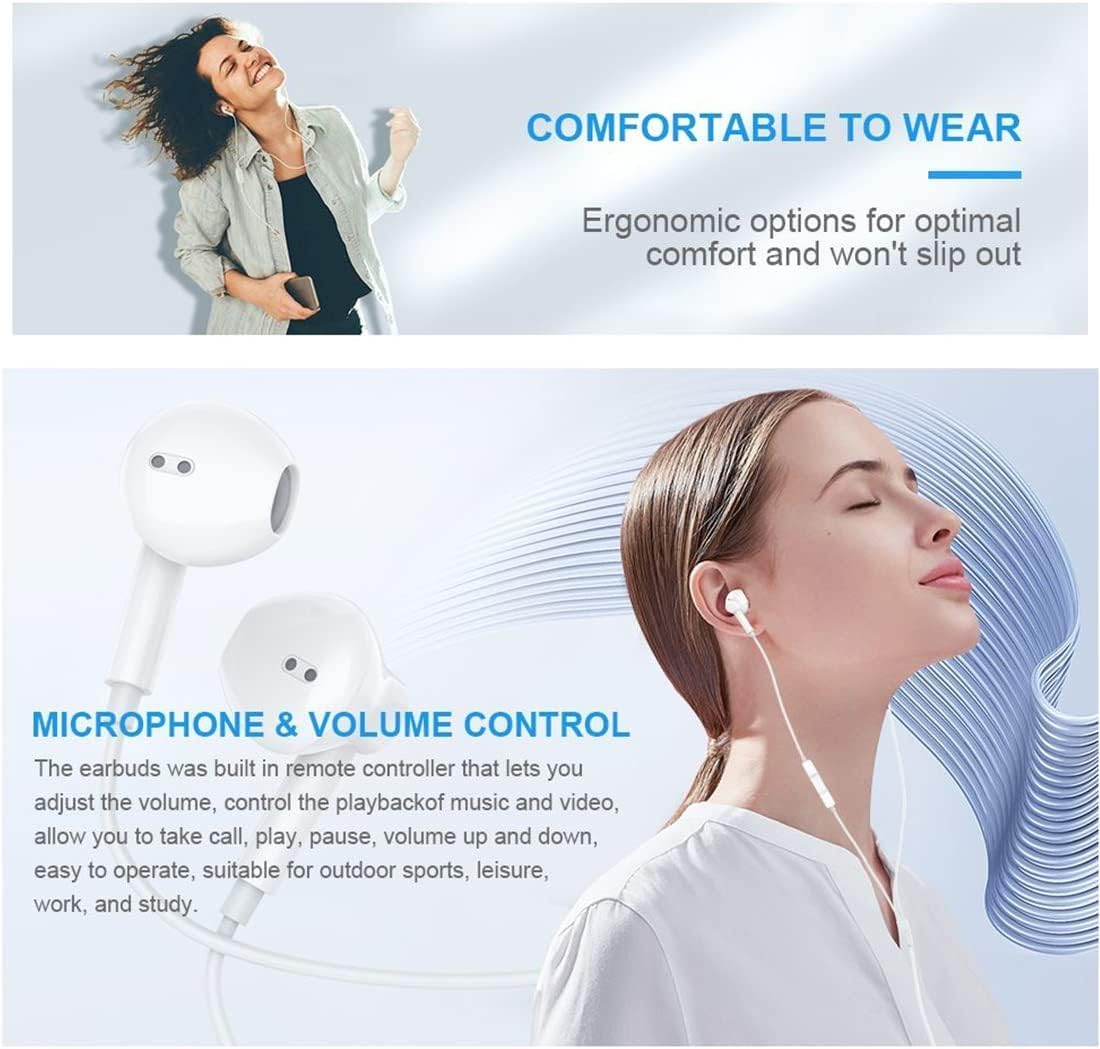 【Excellent sound quality】: built in upgraded chips, our wired headphones give you the most authentic sound quality, and the 2 holes send out 360 degrees stereo sound, which allows you to better immerse in your music world during sports and workouts.