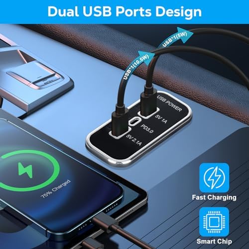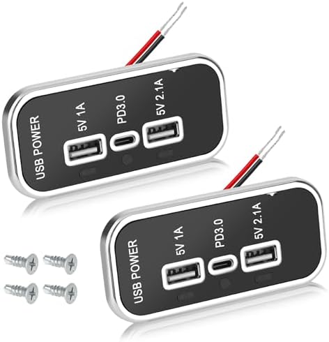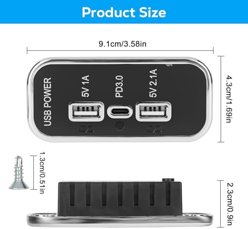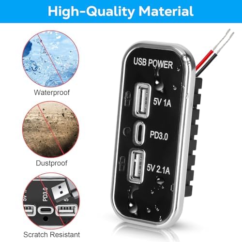 3 PORT DESIGN: This rectangular mount 12v usb outlet comes with a 1A output USB-A port, a 2.1A USB-A port, and a PD 3.0 port (USB-C port). The car charger adapter can charge up to 3 devices at the same time to meet your needs.