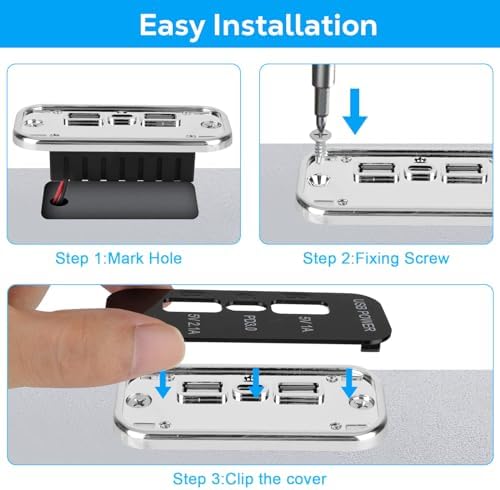 SIMPLE INSTALLATION: Mark the hole and drilling, insert the outlet, screw in the screws, and connect the red wire to ‘+’ and the black wire to ‘-‘. The 12v usb c socket has a compact size that won’t take up your space.