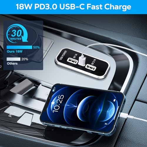 MULTIPLE PROTECTION: The car charger panel is made of high-quality ABS and aluminum sheet material, which is strong and durable. The 12-volt power socket has overcurrent, overvoltage and short circuit protection to ensure safe and reliable charging.