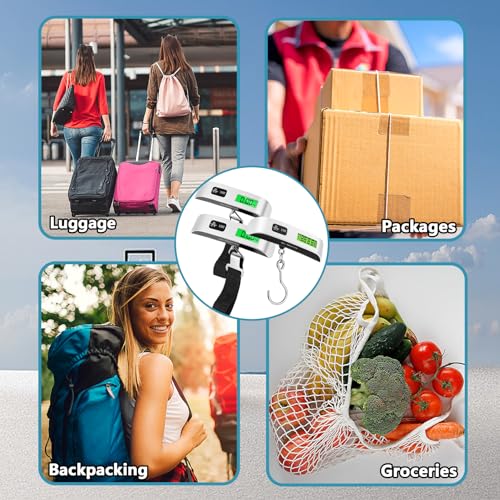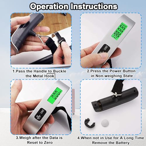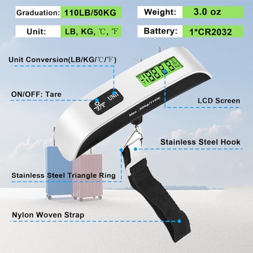 🧳Easy to Operate: This luggage scale is simple to use and can display pounds, Fahrenheit, Celsius and kilograms, just press the UNIT button to convert units. T-shaped rubber handle design, comfortable to hold.