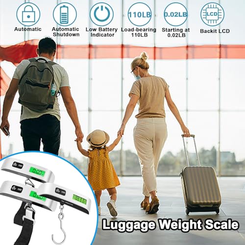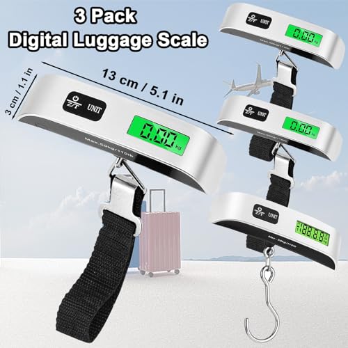 3 Pack Digital Luggage Scale,110LB Luggage Weight Scale,Suitcase Weight Scale with Hook,Hanging Baggage Scale with Backlit LCD Display,Digital Weight Scales for Travel,Battery Included