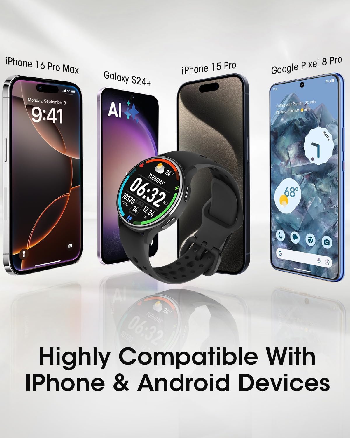 【Wellness Reminders for a Balanced Life】: This smart watches for women encourages a balanced lifestyle with gentle reminders to move when you’ve been sitting too long. Set up personalize reminders for your vitamins or medications, making it easier to care for yourself during busy days. It also tracks your steps and sleep, guiding you toward a healthier, more mindful way of living.