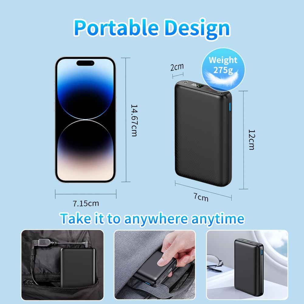 【Professional Heated Vest Battery Pack】30000mAh large-capacity battery pack for heated vest.The heated vest battery pack replacement has pocket size, ultra-compact, ultra-portable. It is handy and easy to put the battery for heated vest in your pocket or handbag.