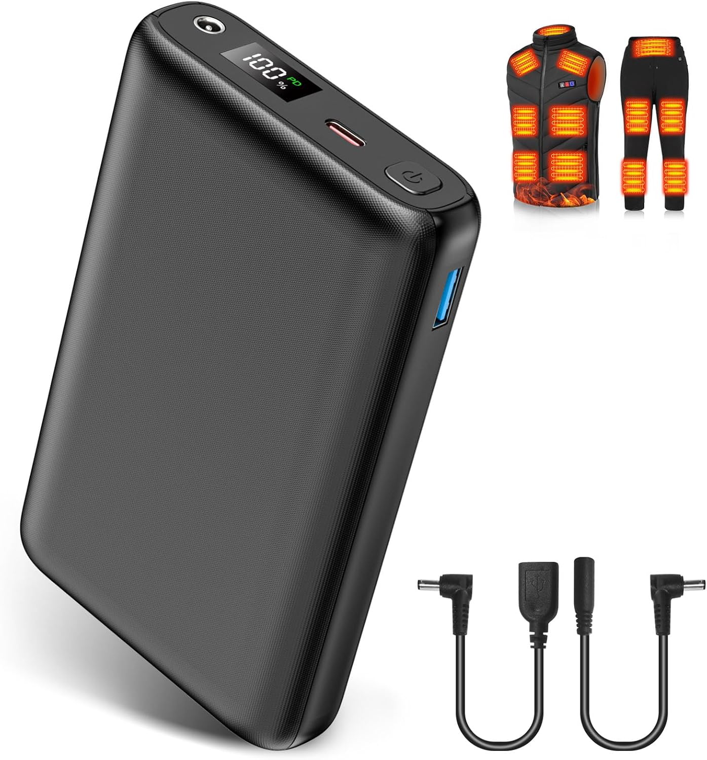 【Universal Compatibility 】 This power bank’s Type-C Port supports Input and Output. It’s Multiple Input/output settings 5V/3A, 9V/2A, 12V/1.5A. Suitable for all USB 5V/3A 9V/ 2A 12V/1.5A heated vests, as well as DC 7.4V heated vests. The USB port and Type-C port can charge phones and mobile devices.