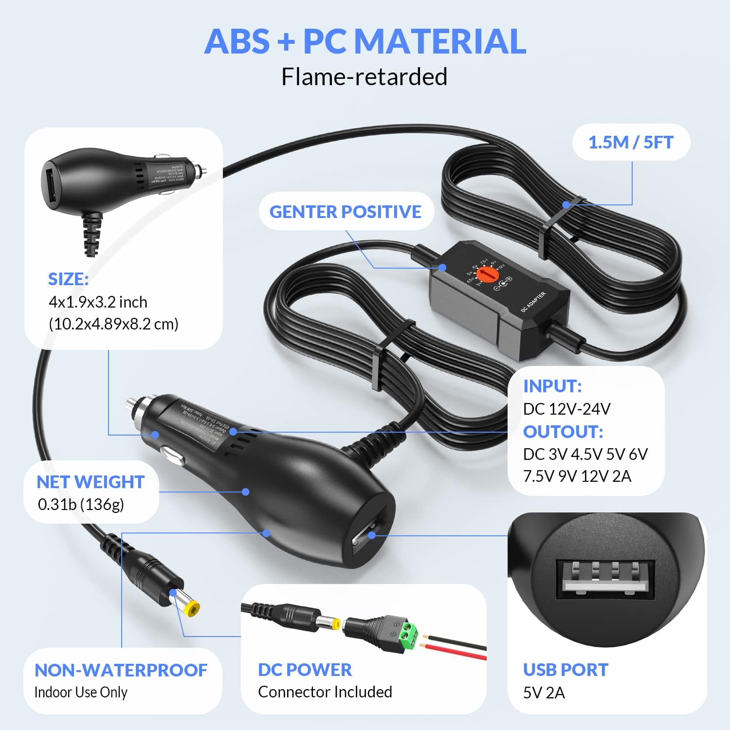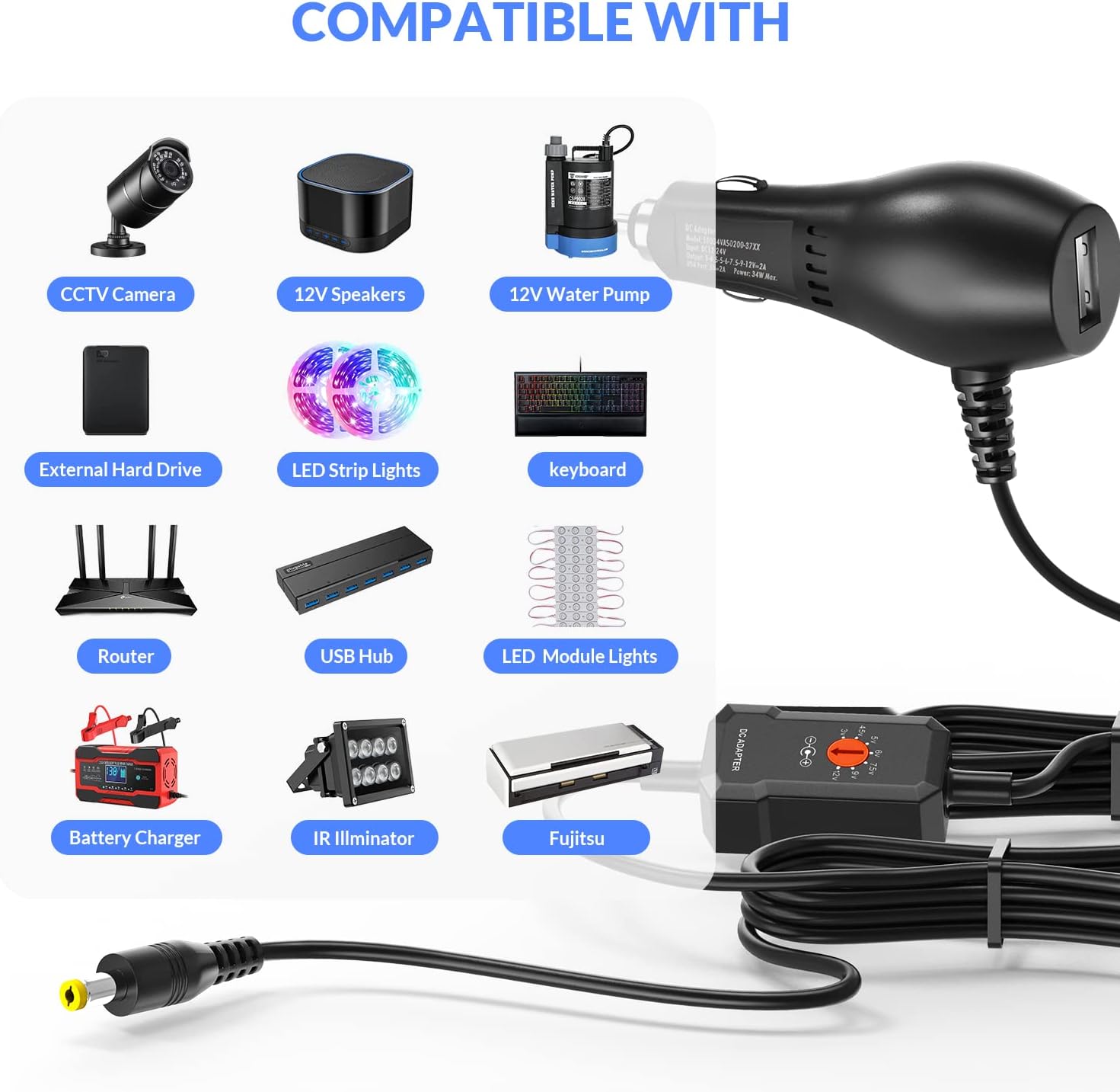✔【Universal Compatibility】– Input: DC 12V/24V Output: 3-12V 2A. Universal suitable for Home Appliances, Medical Equipment, Speaker, Wireless Headset, Seat Cushion, Radio, Camera, CCTV, LED Strip Lights, DVD player, etc.
