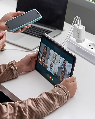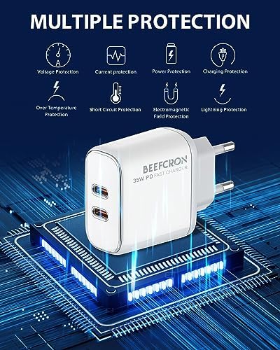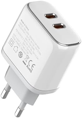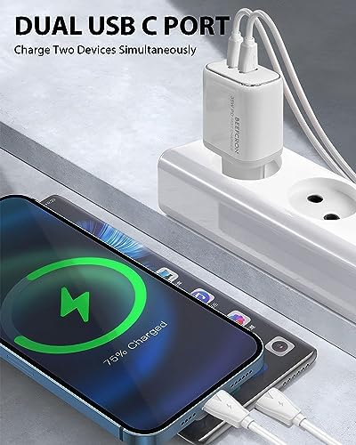 【35W Dual Port Type C Fast Charging】: With a high power of 35W, the Power Delivery Fast USB C adapter offers fast and efficient charging, it can charge your mobile phone, tablet, laptop, watch, earphones, etc. to meet your charging needs. For iPhone 14 Pro Max can be fully charged to 60% in just 30 minutes. Equipped with a USB-C to USB-C charging cable, it can charge your iPhone at any time.