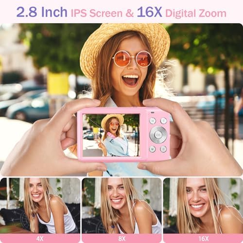 【2.8″ IPS Display & 16x Digital Zoom】: BEVLXNIV Vlog camera is equipped with a 2.8″ IPS display, allowing users to see the captured images and videos more clearly. At the same time, the camera supports 16x digital zoom, making it easy to take ultra-high-definition photos and videos at close or long distances.