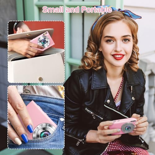 【Portable Camera】: The compact digital camera is small and portable, can be held firmly even with small hands, and does not take up space in your pocket or bag. Includes a 32GB SD card and 2 rechargeable batteries, even if you take a lot of photos and videos without worrying about running out of space quickly, 2 rechargeable batteries ensure that you can continue to capture wonderful moments without interruption.