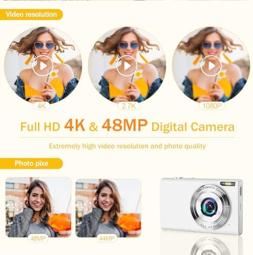 【Full HD 4K & 48MP Digital Camera】: The video digital camera uses an advanced CMOS sensor, which can provide 4K ultra-high resolution video and 48MP clear images. Easy to operate and used to create YouTube videos anytime and anywhere and record life with high-quality photos of beautiful moments.