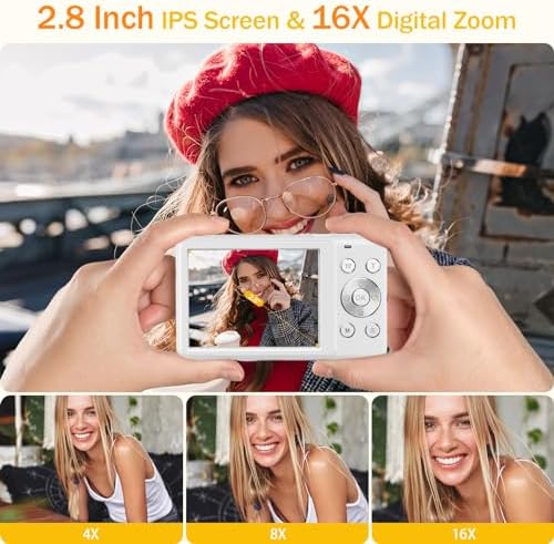 【Multifunctional Digital Camera】: The digital camera provides a series of simple and easy to operate functions, including anti-shake, beauty, continuous shooting, face detection, smile detection and 20 viewing effects to choose from. In addition, this camera can also be used as a webcam to facilitate communication and sharing on social media platforms such as Twitter, Facebook, YouTube, etc.