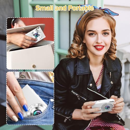 【Portable Camera】: The compact digital camera is small and portable, can be held firmly even with small hands, and does not take up space in your pocket or bag. Includes a 32GB SD card and 2 rechargeable batteries, even if you take a lot of photos and videos without worrying about running out of space quickly, 2 rechargeable batteries ensure that you can continue to capture wonderful moments without interruption.