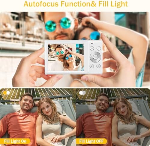【Autofocus Function and Fill Light】: The point and shoot camera is equipped with an autofocus function, which can help beginners capture the wonderful moments they want to capture more accurately and clearly. The camera’s flash is also very handy, ensuring clear and perfect photos on dark days and nights.