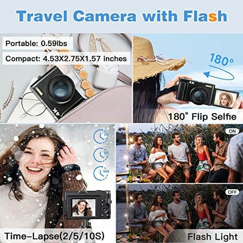 ๐ฅ๐๐ฌ๐ก: The small compact camera for travel weighs 0.59 LBS and is the size of a palm. You can manually shoot or record video for a long time without soring hands, and easily slip a portable travel camera into your bag. In addition, the digital camera for photography and video has its own flash, which can take clear photos and videos in darker environments, and record the cultural scenery you want to record on a beautiful and relaxing night!