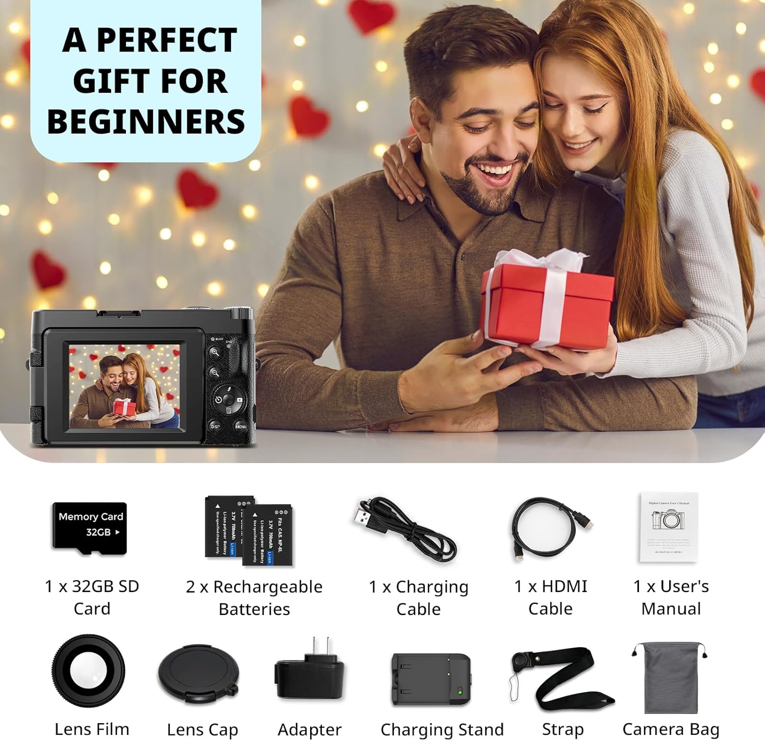 A PERFECT GIFT WITH A HASSLE-FREE WARRANTY: User-friendly and versatile, this portable digital camera for teens is an ideal gift for kids, beginners, amateurs, teens, and seniors, fulfilling daily shooting needs easily. Enjoy our worry-free 18-month replacement and refund warranty. Our prompt customer support team is ready to assist you in under 12 hours!