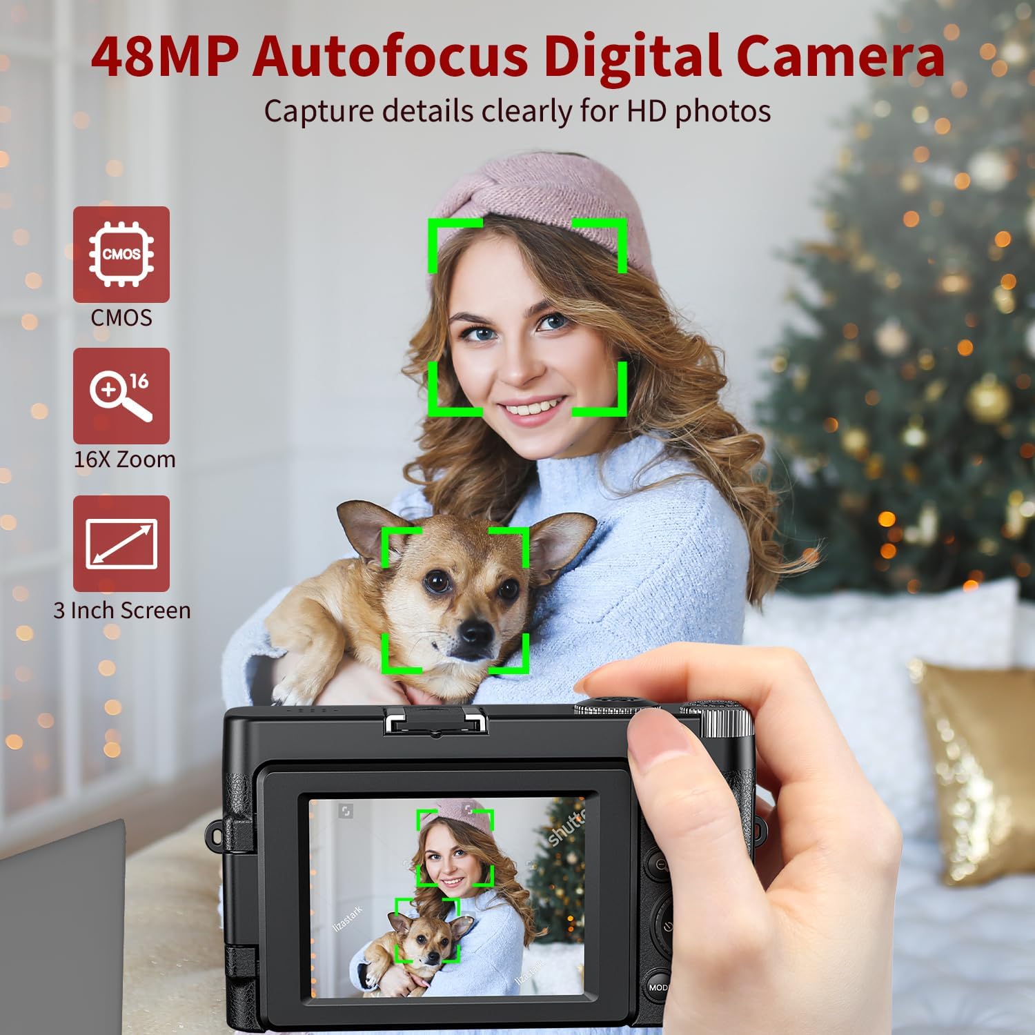 【48MP Autofocus Camera with Flash】 The camera for photography has autofocus function. It is capable of taking 48MP HD photos by focusing on details and capturing sharp textures with its CMOS professional image sensor. Built-in flash provides extra light in dark environments for great imaging. Even beginners can take perfect pictures.