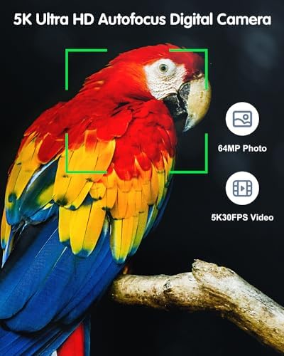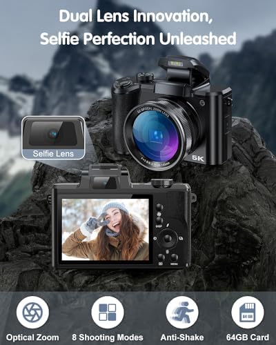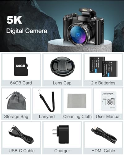 【5K & 64MP Ultra-High Definition Imaging】Fulealfly 5K Digital Camera empowers your vision with sony IMX206 16 Megapixel Sensor, capturing effortless 64MP photos. This video camera excels in the realm of photography, delivering impressive 5K/30FPS (MP4) videos that preserve rich details and dynamic range. Whether you’re seizing everyday moments or embarking on a travel adventure, the Digital Camera stands out as a cost-effective choice for both photography enthusiasts and beginners alike.