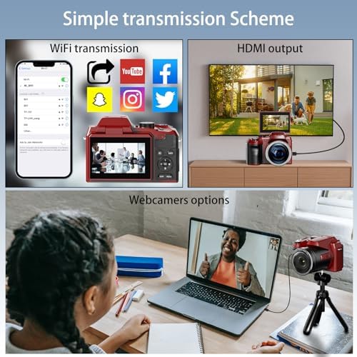 π»[PC camera option & HDMI output] We’ve also designed our digital cameras to be convenient for transferring. You can use the USB port to link to your PC and use our camera as a webcam; or you can use WiFi and APP to transfer your data to your mobile phone; and you can also use the HDMI port to play the videos you take on a larger screen. Convenient and efficient linking methods will bring more convenience and help you save and edit your favorite videos.
