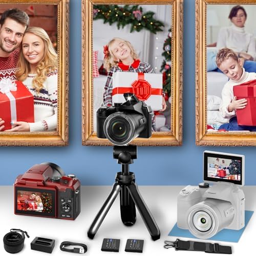 π[Accessories& Gifts] We offer a wide range of accessories for camera kits.You will get camera x1, 32GB TF card x1, USB cable x1,rechargeable lithium-ion battery x2, manual x1, charger x1,camera bag x1,camera shoulder strap x1,bag strap x1,tripod x1. This digital camera is very suitable for entry-level users and is a perfect gift for beginners.If you have any questions, please contact us without hesitation. We offer free replacement and refund service for three months.
