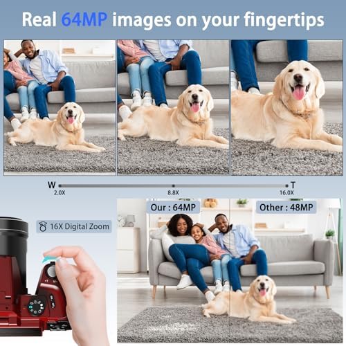 64MP Digital Camera for Photography, 4K Vlogging Camera for YouTube with 3β Flip Screen,16X Digital Zoom, WiFi& Autofocus,2 Batteries, 32GB TF Card
