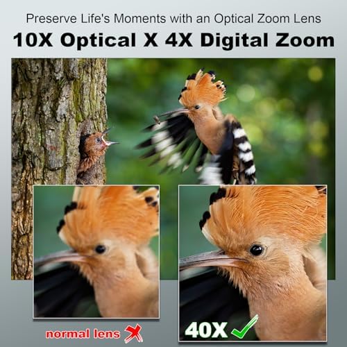 【Powerful 40X Zoom for Versatile Video】:Enjoy the power of 40x zoom with 10x optical and 4x digital zoom, perfect for capturing distant subjects. Connect to a PC and use as a webcam for video calls and live streaming. Transfer photos quickly via USB cable for instant sharing on social media.