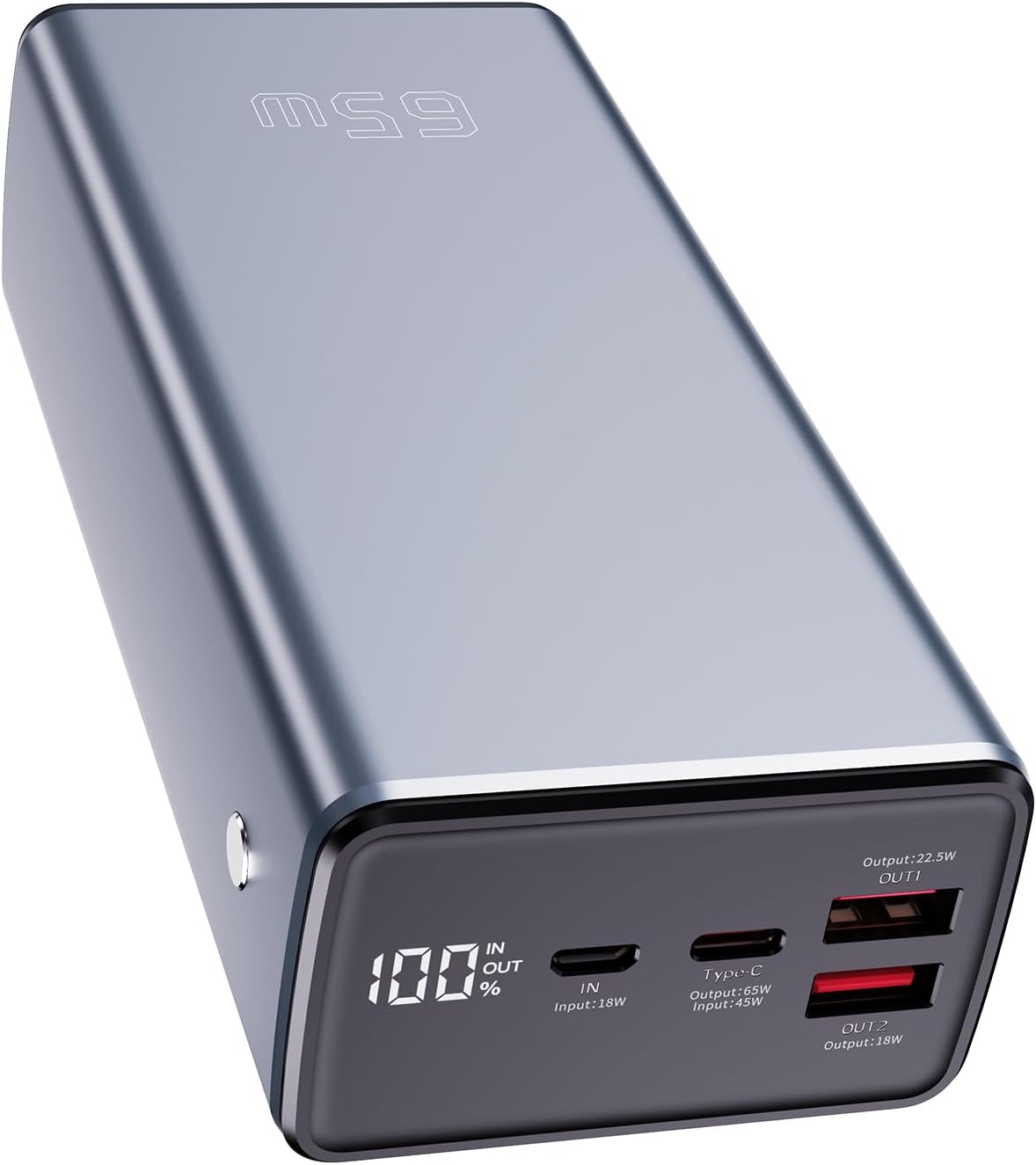 Laptop Power Bank 50000mAh Power Delivery – Most of the electronic gadgets are power hungry devices, and they have to be constantly fed. So, whether you are travelling or face a power outage at home, Portable Chargers come handy. Featuring a Large Power Bank, support for 2 USB-C PD4.0 and 2 USB QC3.0 outputs, the 65W Power Bank 50000mah will charge up your devices in no time as you go! Congratulations! You electronics just got a new best friend!