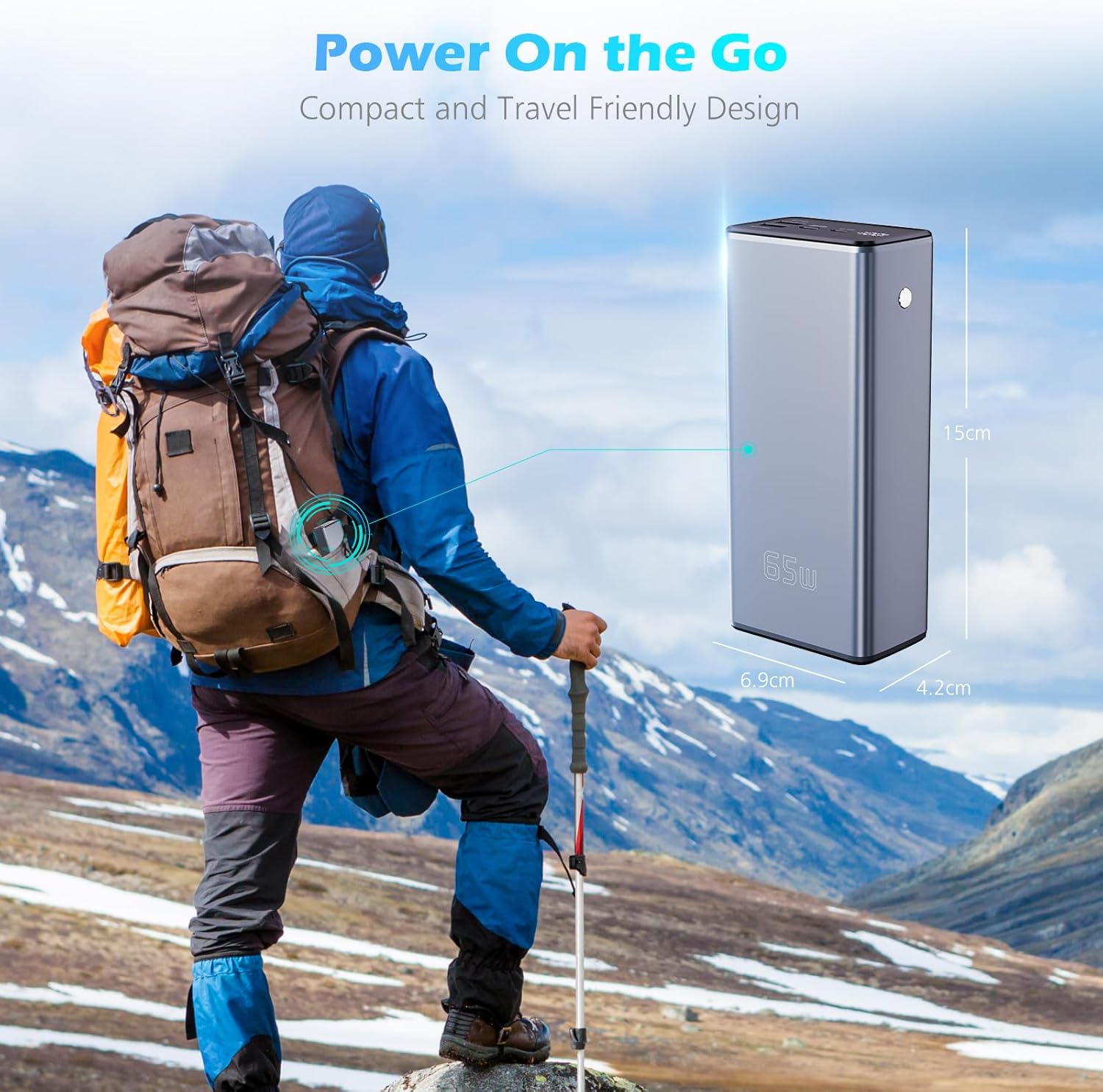 Travel Ready, Good for Flight – Embodying all this power in a solid carbon fiber frame and case, the 65W Portable Charger is 31% lighter than conventional Power Banks and compact enough to slip right into your backpack. The High Capacity Power Bank is the ultimate Portable Battery Pack Charger for road warriors, outdoor enthusiasts who enjoy hiking or camping, also a great addition to your emergency prep kit or bug-out bag.