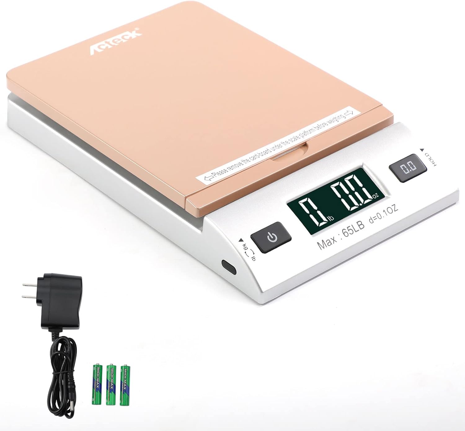 Solid structure & Sleek/Modern Design – Acteck new postal scale is redesigned with smooth gold platform with silver base and a 90 degree open-up lid. It is improved with a more solid structure, blended with a sleek and modern style which allows for easy storage.