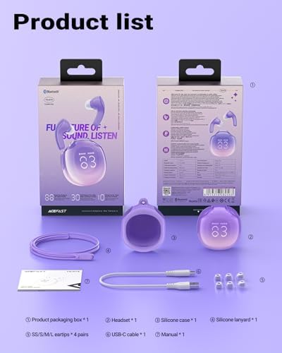 🎇[Ergonomic Design and Lightweight] ACEFAST T9 Bluetooth headphones comes with four different sizes of ear tips, our T9 are fit for most people’s ear canals. Our wireless Bluetooth headphones are small and light, single earbud is only 0.35oz, earbud size is 1.45*0.95*0.60in, charging case size is 2.01*2.25*0.95in, It’s more convenient to carry.