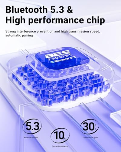 🎈[HD Stereo Audio,Smart Touch Control] The SVE AI noise reduction technology of wireless Bluetooth earphones can make you enjoy music everywhere even in a loud environment. The HiFi stereo sound of the Bluetooth earbuds provides a wider sound field and a shocking low frequency experience. The earbuds wireless Bluetooth with smart touch control, you can easily control play/pause, skip to previous/next track, adjust volume, answer/end calls, enable voice assistance, and more.