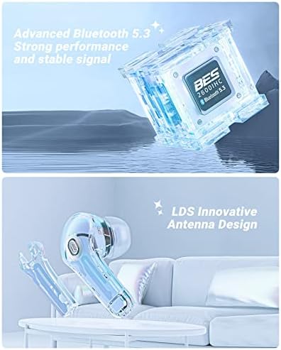 ✨[LED Digital Display, Crystal Colorful Design] ACEFAST is an emerging brand in the wireless earbuds market with futuristic design earbuds. The latest TWS sports a crystal clear transparent design and it has an LED light under the case. The 3D embossed display make easily know the power status of Bluetooth earbuds, and the 480mAh battery capacity of the charging case provides four full charges for both 45mAh earbuds, each lasting play to six hours on a single charge.