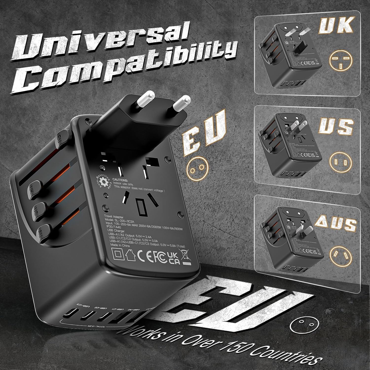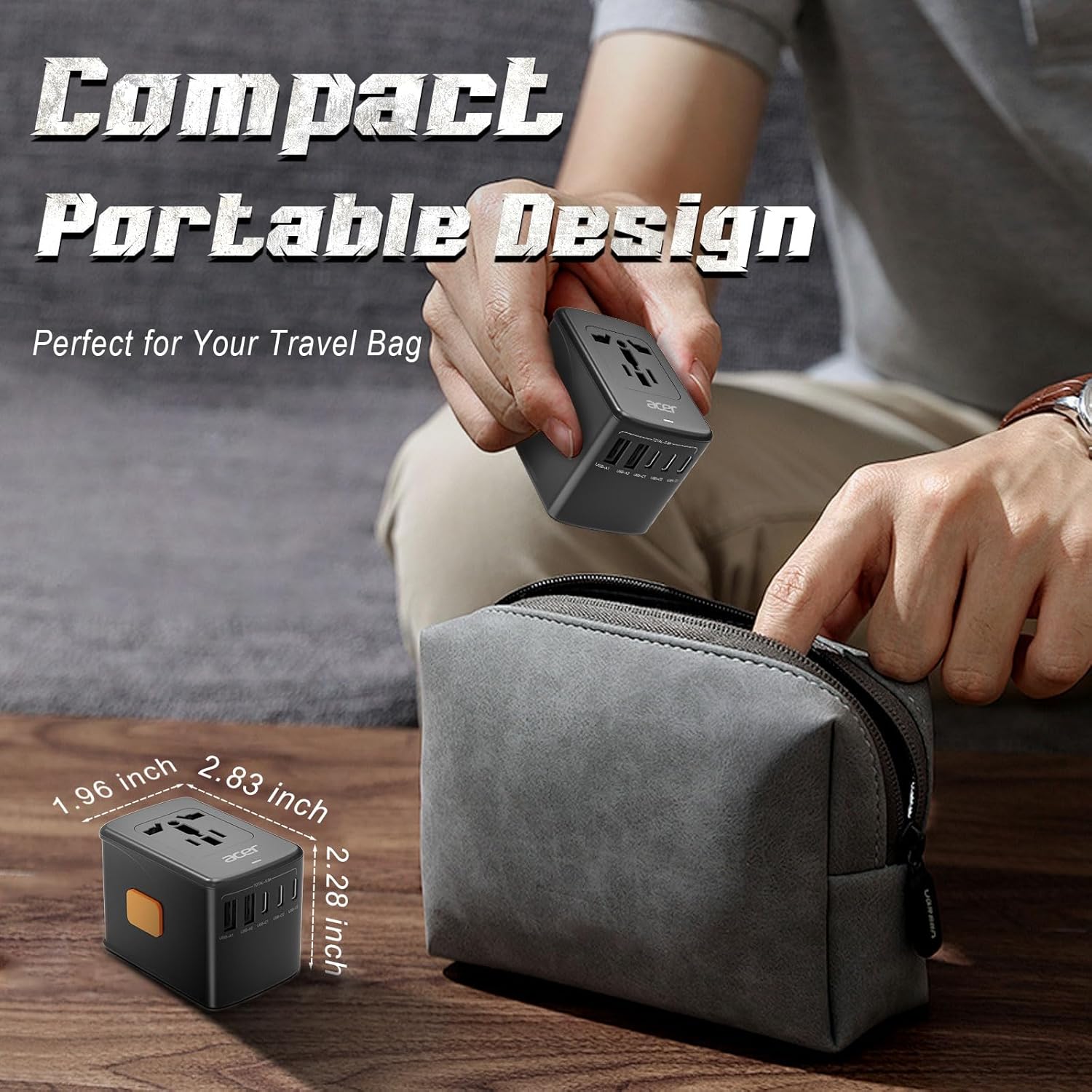 Compact Design: Designed for portability, this travel adapter is compact and lightweight, fitting easily into your luggage or backpack. Its sleek and portable build ensures that you can carry it anywhere without adding bulk, making it the perfect travel companion for all your global adventures.