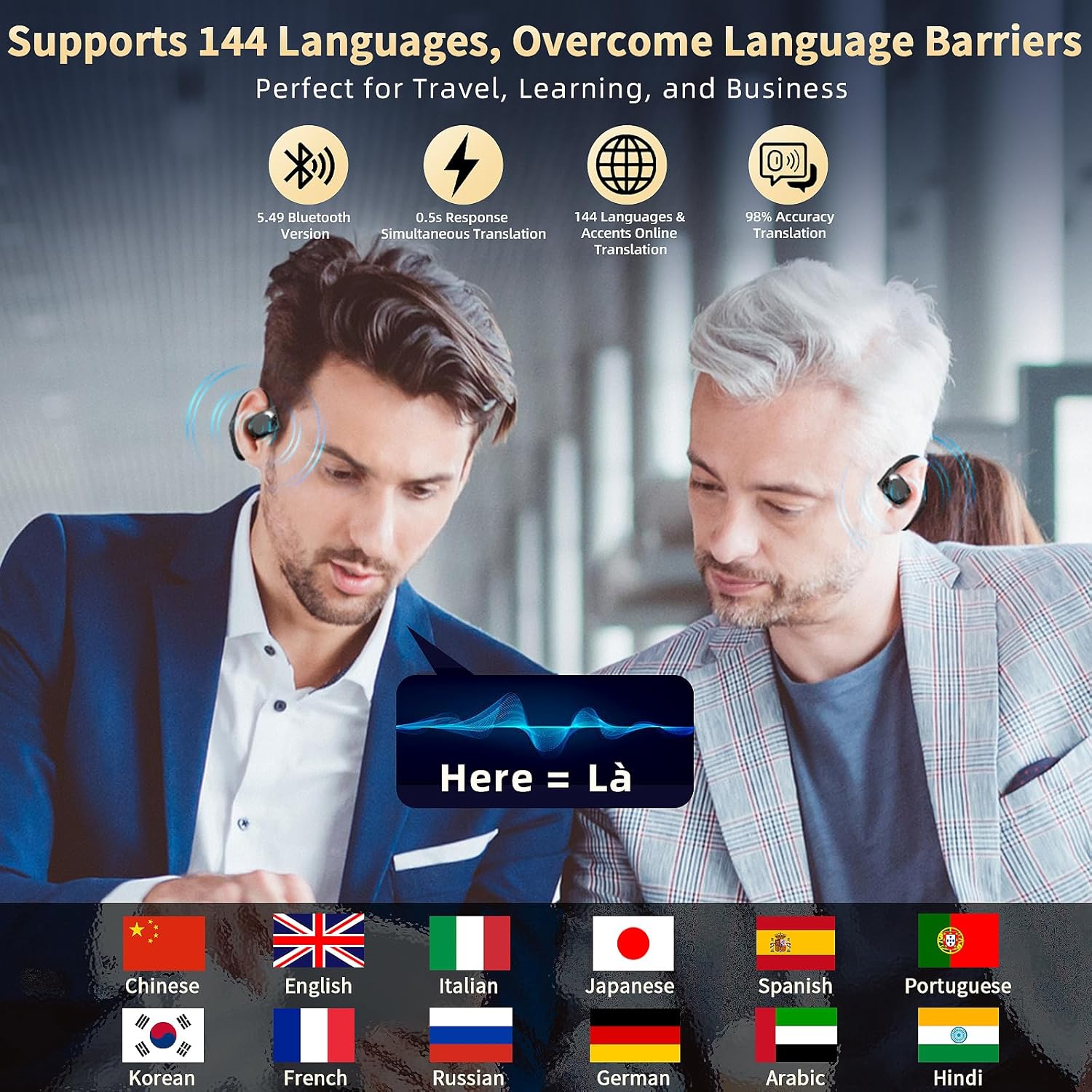 Supports 144 Languages: Experience seamless communication around the globe with our AI translator earbuds. Capable of translating 144 languages in real-time, these earbuds translator ensure you’ re understood wherever you go, whether traveling, studying, or conducting business. This extensive language support makes them the ideal choice for cross-cultural communication.