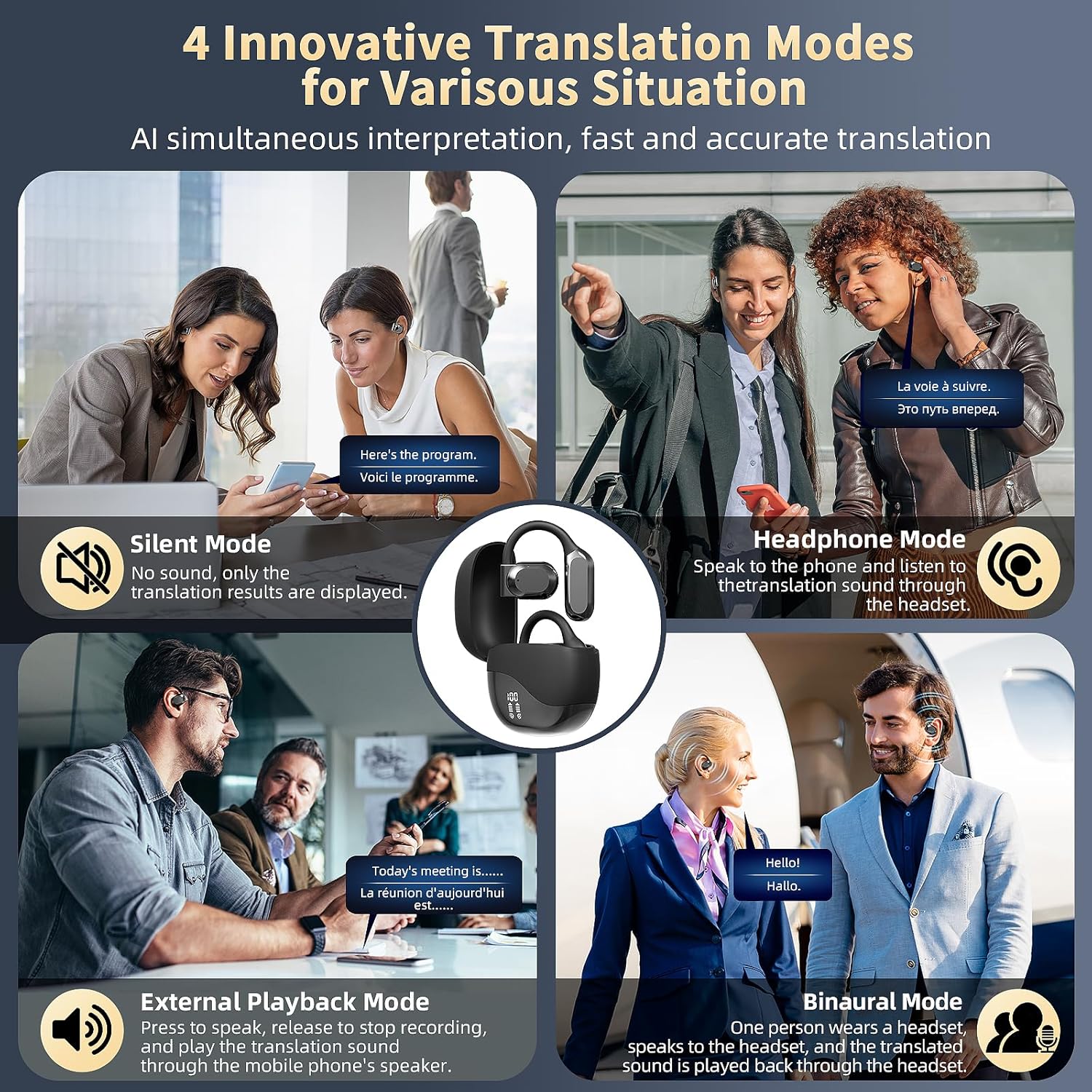 Extended Battery Life: Stay connected longer with the impressive battery performance of our translation headphones. Offering up to 4 hours of continuous listening time and a communication range of up to 10 meters, the included fast-charging case ensures your bluetooth earbuds are always ready when you need them. Never let low battery interrupt your conversations or entertainment.