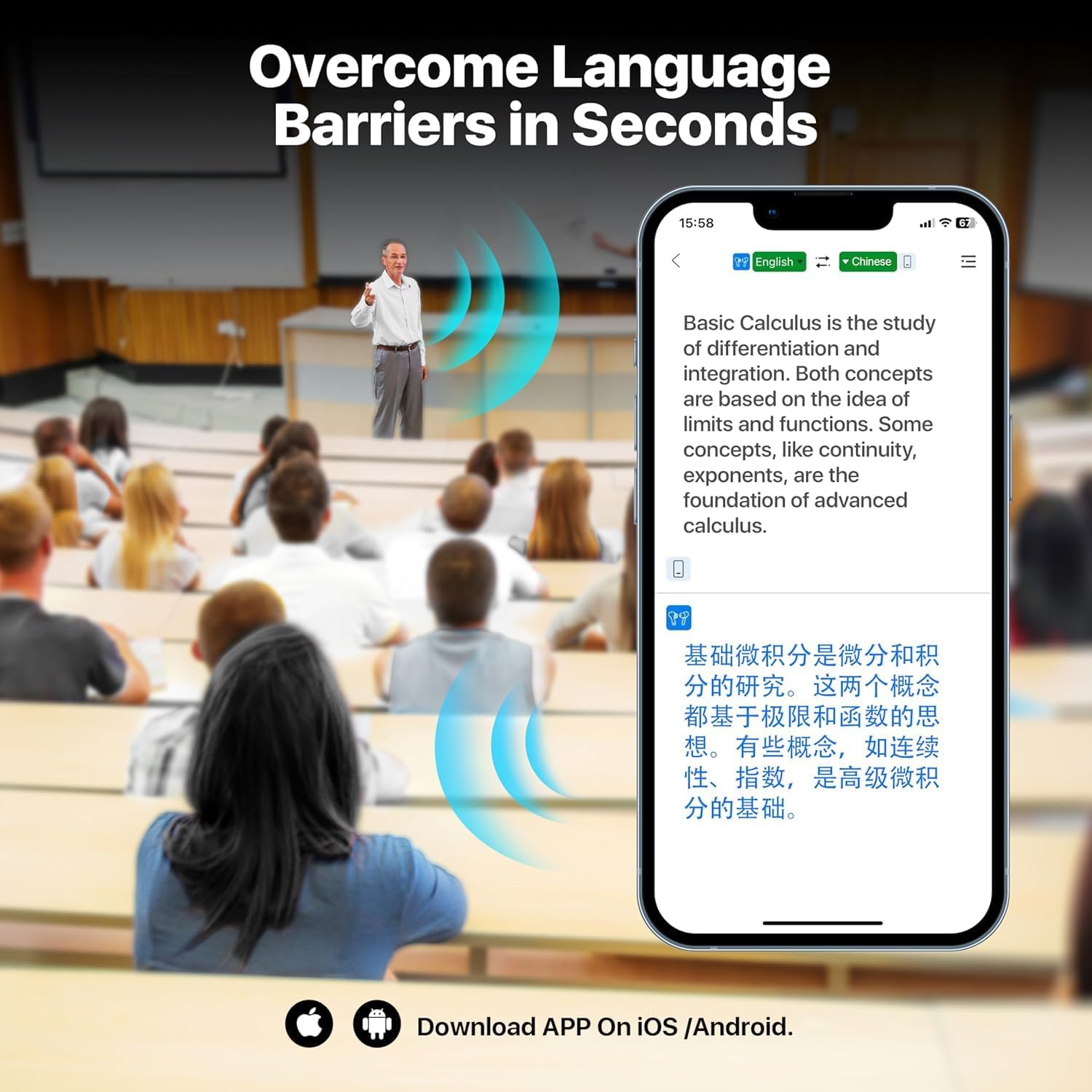 Real-Time Multi-Language Translation: Supports real-time translation in 144 languages, Certain off-line package requires in-app purchase specifically optimized for business and international communication to ensure accurate information delivery
