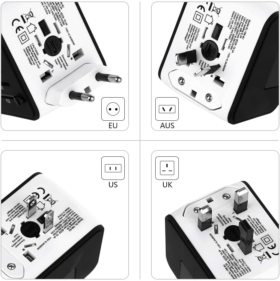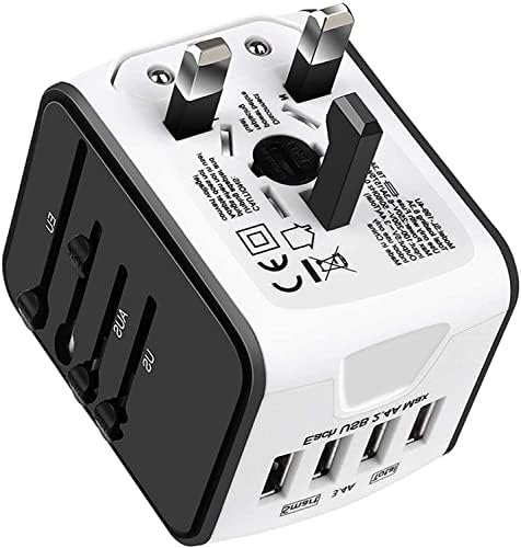 All in One Universal 4 USB International Travel Adapter Universal Power Adapter Wall Charger Worldwide Perfect for European US, EU, UK, AU 160 Countries (White)
