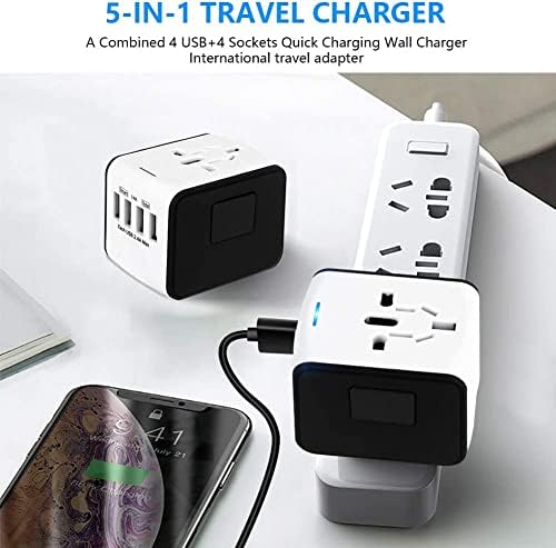 ★SMART USB CHARGING 5 DEVICES SIMULTANEOUSLY – International power adapter with 4 usb slots and one AC socket can charge 5 devices at the same time. The travel adaptors with smart chip can automatically charge most of devices, compatible for iPad, iPhone, Android, digital camera, laptops, MP3, combo and other electricity devices. NOT for high-power appliances such as hair dryers, hair straightener, conair