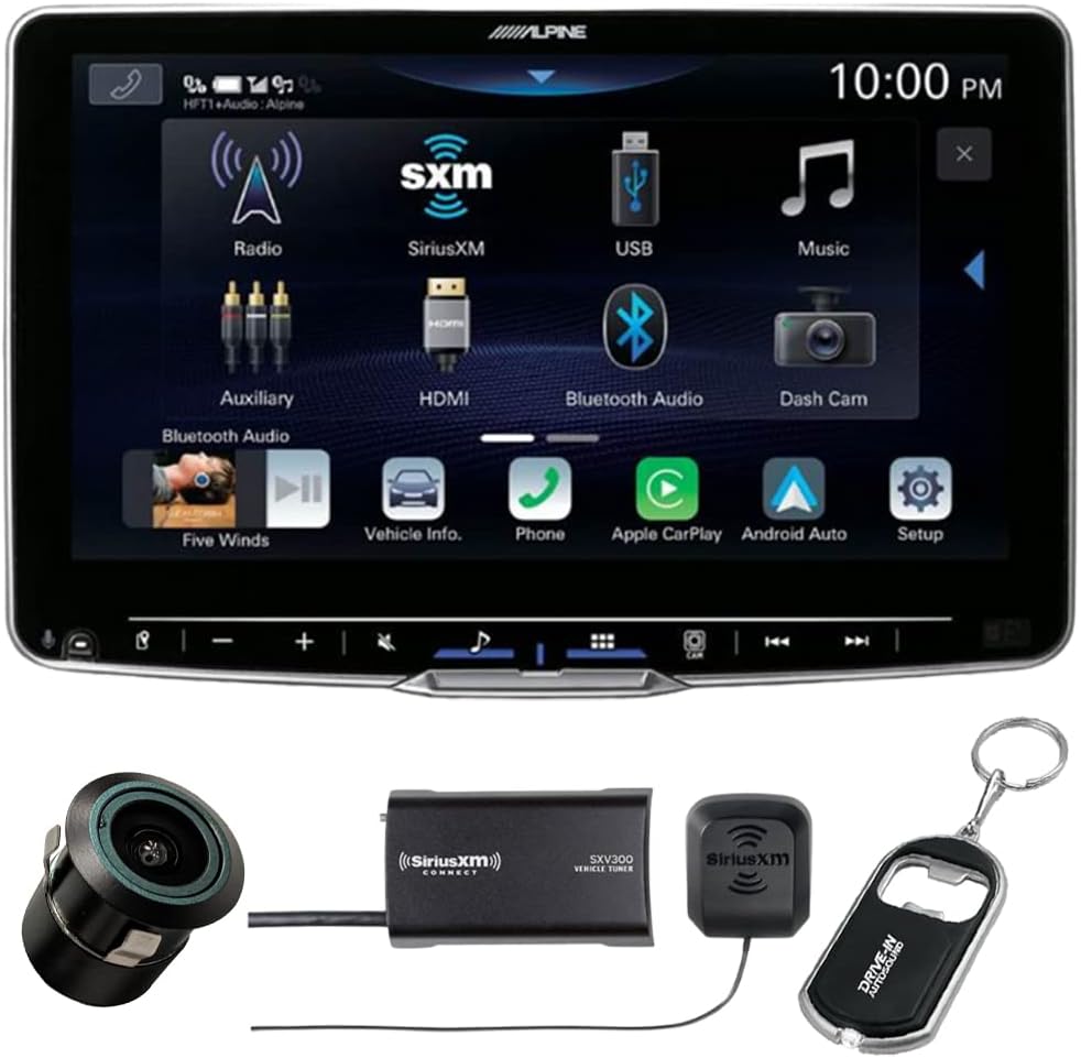 Alpine Halo9 ILX-F509 9″ Digital Multimedia Receiver (Does Not Play Discs) with Back-Up Bullet Camera and SiriusXM Tuner Alpine Halo9 ILX-F509 Digital multimedia receiver (does not play discs) with 9″ Hi-res capacitive touchscreen and adjustable vertical mounting positions. Includes the features of wire and wireless Apple CarPlay, Android Auto, built-in Bluetooth, HD radio tuner, etc. Product Highlights: Digital multimedia receiver with AM/FM tuner (does not play discs) 9″ Hi-res capacitive touchscreen with adjustable vertical mounting positions Built-in HD Radio tuner Bluetooth hands-free calling and audio streaming Smartphone Features: Apple CarPlay and Android Auto compatible (wired and wireless) Built-in iPod, iPhone, and iPad control Pandora and Spotify control with iPhone and Android Audio/Video Features: Plays lossless FLAC audio files up to 96kHz/24-bit 24-bit digital-to-analog converter (DAC) 13-band parametric equalizer Expandability: Inputs: 2 Rear USB ports; Rear HDMI input; Rear auxiliary input; 2 Camera inputs (RCA) Outputs: Rear HDMI output; 6-Channel preamp outputs Back-Up Bullet Camera: CMOS rear-view camera 420 lines of resolution 0.5 lux 155-degree view IP67-68 waterproof -30 to 70c temperature SiriusXM Tuner: Connect, control and enjoy SiriusXM through the vehicle’s in-dash audio system. Supports advanced features such as Tune Mix, TuneScan, TuneStart, Weather Now, Replay, iTunes song tagging The car radio tuner allows users to connect, control, and enjoy SiriusXM through the vehicle’s in-dash audio system.