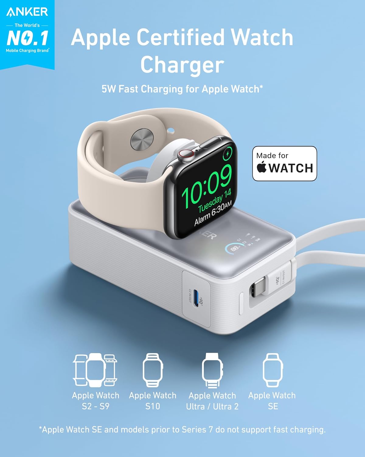 Officially Certified for Apple Watch: Maximize your charging efficiency with the Apple-certified power bank, capable of charging an Apple Watch Series 9 to 47% in just 30 minutes.