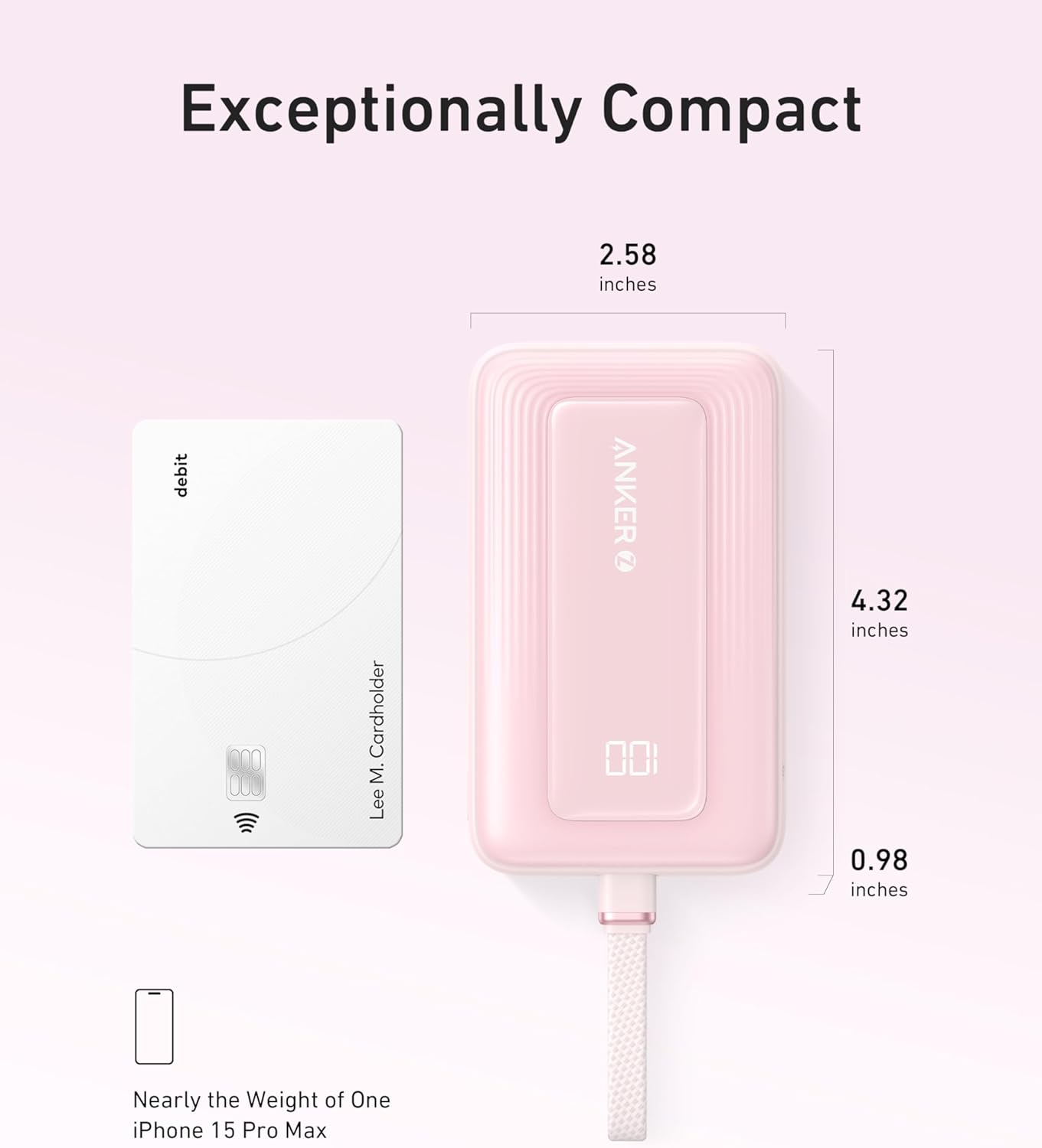 What You Get: Anker Zolo Power Bank (10K, 30W) with a 5.4-inch (13.7 cm) built-in USB-C cable.