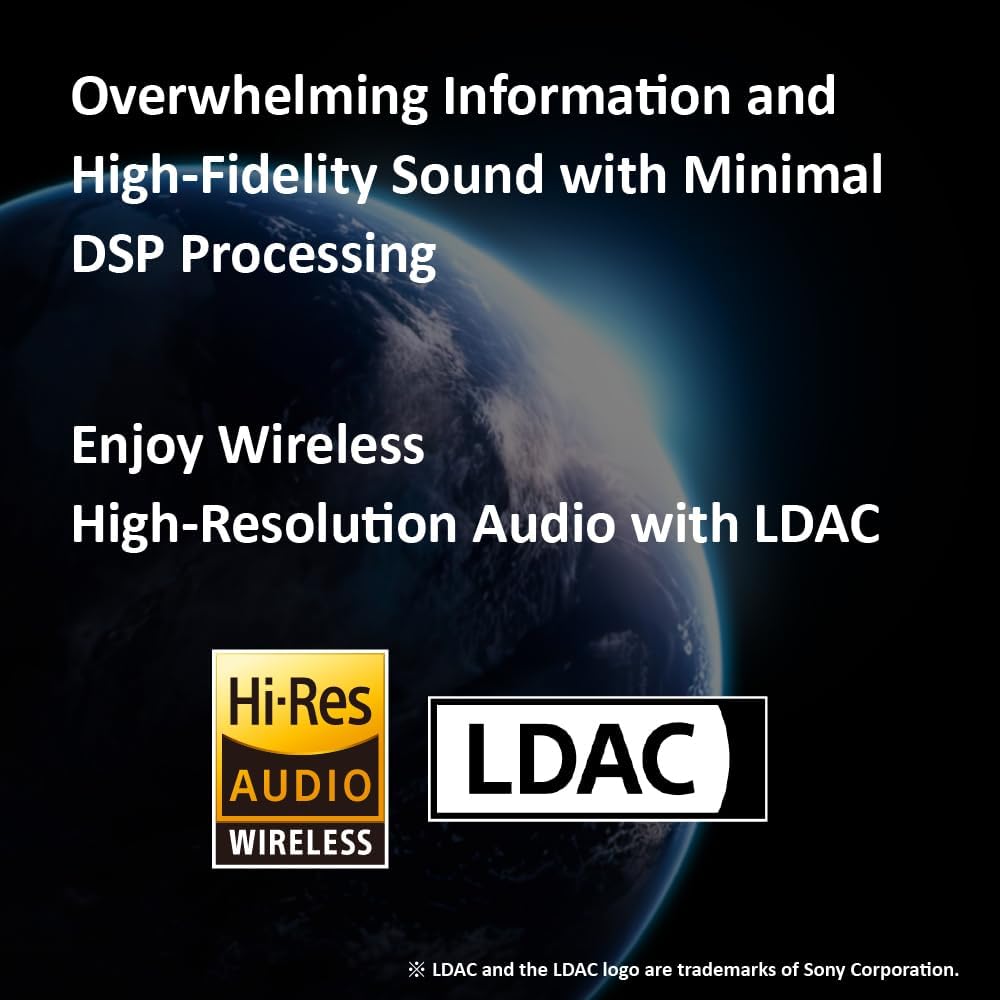 High-Fidelity Sound: Minimized DSP processing and a powerful driver setup deliver dynamic, expansive audio with high-resolution capabilities, supported by LDAC technology for flawless wireless sound.